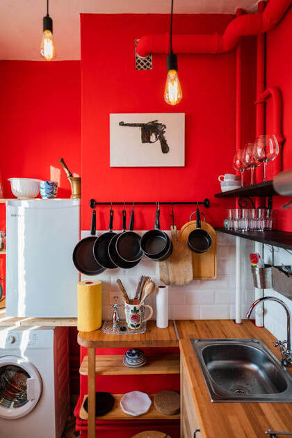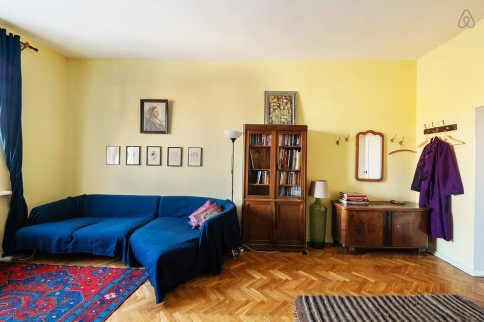 • Винтажный интерьер, просторная комната с диваном и кроватью (double), полностью оборудованная кухня, ванная с ванной.
