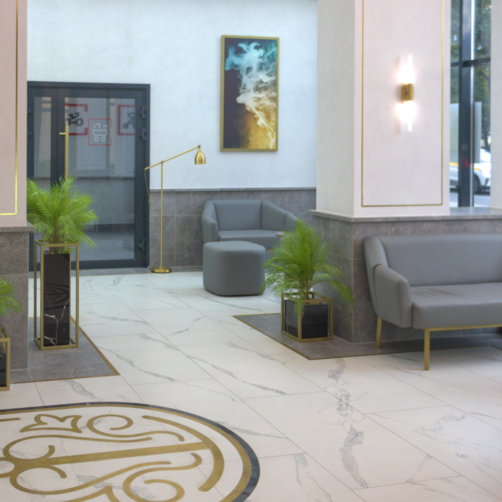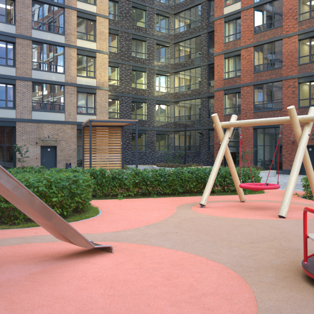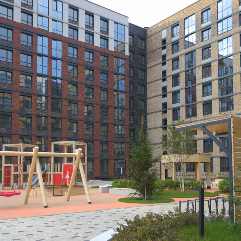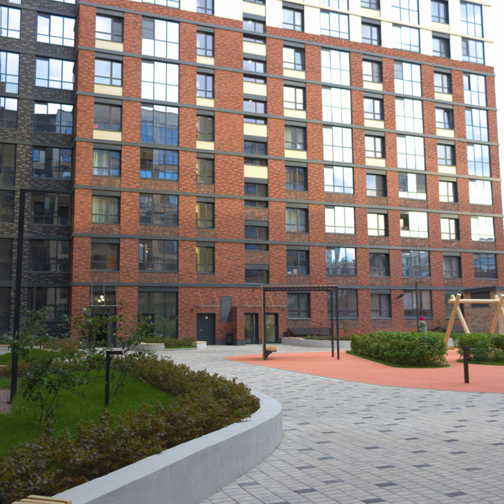 Закрытая территория жилого комплекса оснащена детской площадкой, прогулочными зонами и круглосуточной охраной.